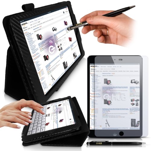 Check Here for Customer Reviews and Buy with Special Price New iPad Mini - Carbon Fibre Black Print PropUp Stand Case Cover (with integrated stand function and magnetic sleep sensors) for Apple iPad Mini & also includes BONUS: G-HUB ProPen Stylus & Screen Protector